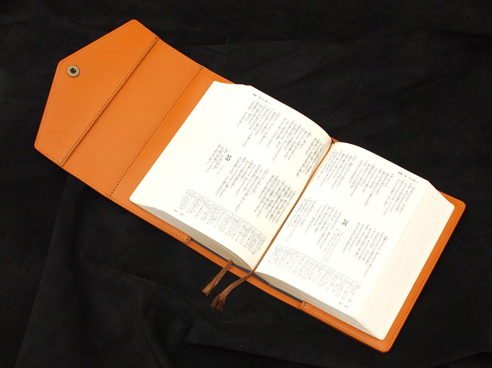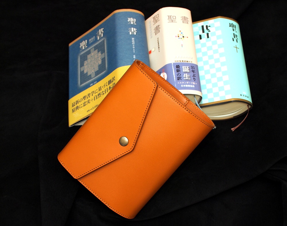 MO-05 姫路レザーキャメル牛革 両銀面プレミアム3つ折り聖書カバー