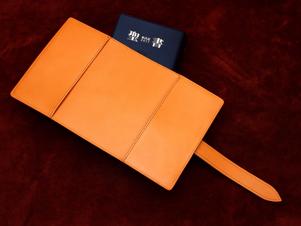 MO-35 姫路レザーキャメル牛革 両銀面プレミアム差し込みベルト聖書カバー